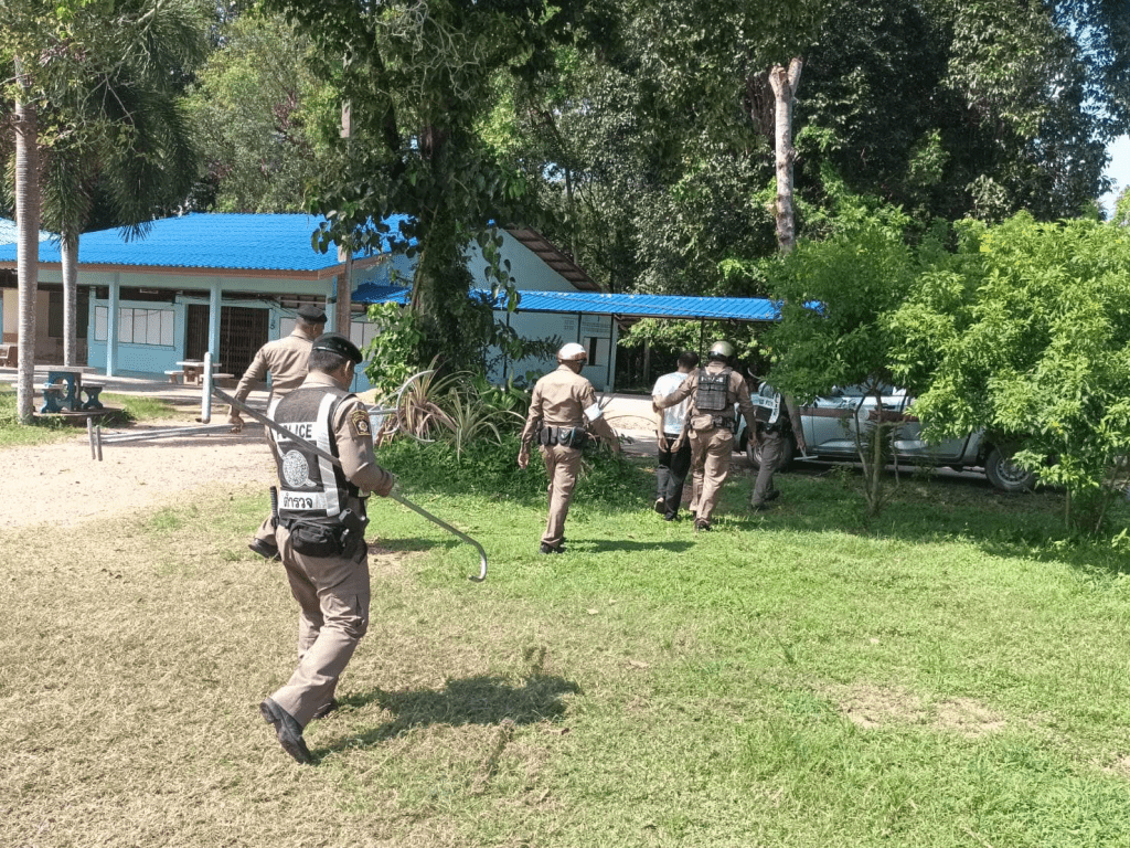 วันที่ 10 ต.ค.67 เวลา 09.00 น. พ.ต.ท.อดิศักดิ์ อันตรเสน สวป.สภ.ควนเนียง ร.ต.อ.วิมล หมื่นเพชร รอง สวป.สภ.ควนเนียง ร่วมชุดสายตรวจรถยนต์,สายตรวจจักรยนต์,สายตรวจจราจร ร่วมซักซ้อมแผนเผชิญเหตุบุคคลคลุ้มคลั่งอาระวาดและให้ความรู้แก่นักเรียนโรงเรียนบ้านกรอบ ต.ควนโส อ.ควนเนียง จว.สงขลา Post Views: 3 Facebook iconFacebookTwitter iconTwitterLINE iconLine