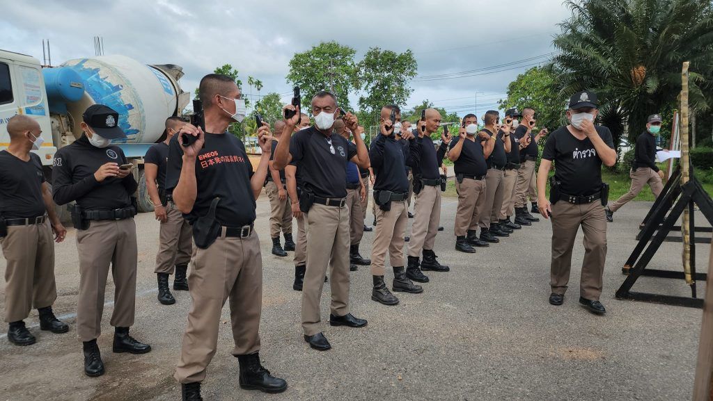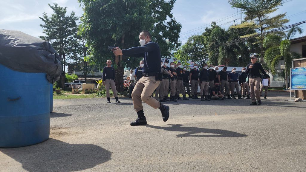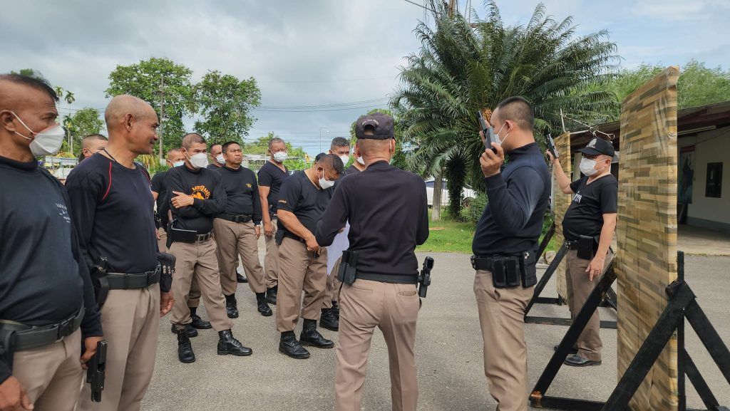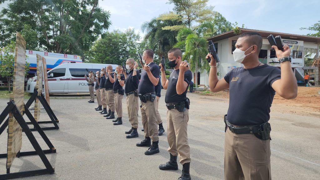 พ.ต.ท.อดิศักดิ์ อันตรเสน สภ.ควนเนียง ทบทวนการฝึกยุทธวิธี การฝึกทักษะการใช้อาวุธปืน ให้แก่ข้าราชการตำรวจของ สภ.ควนเนียง